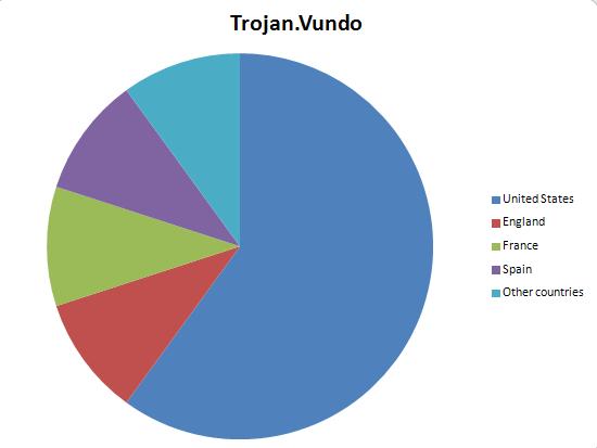 Negli Stati Uniti, Trojan. Vundo era estremamente violento in Washington,D.C., Pennsylvania, New Jersey e alcuni altri Stati, mentre in California, lo stato di New York e Texas Trojan. Zlob.